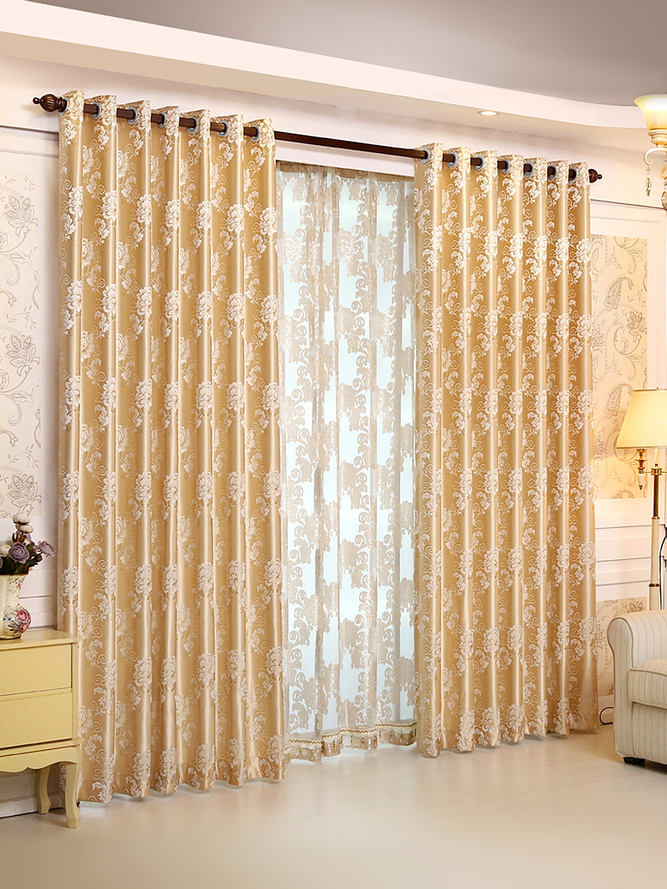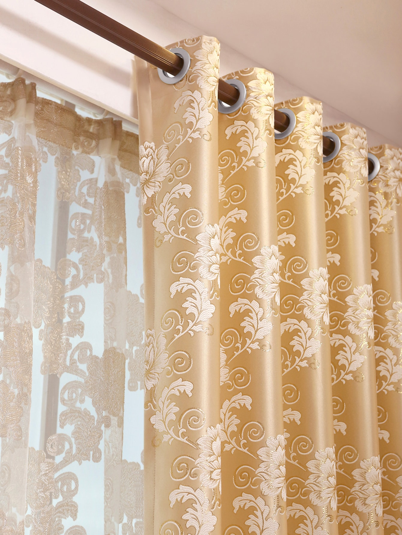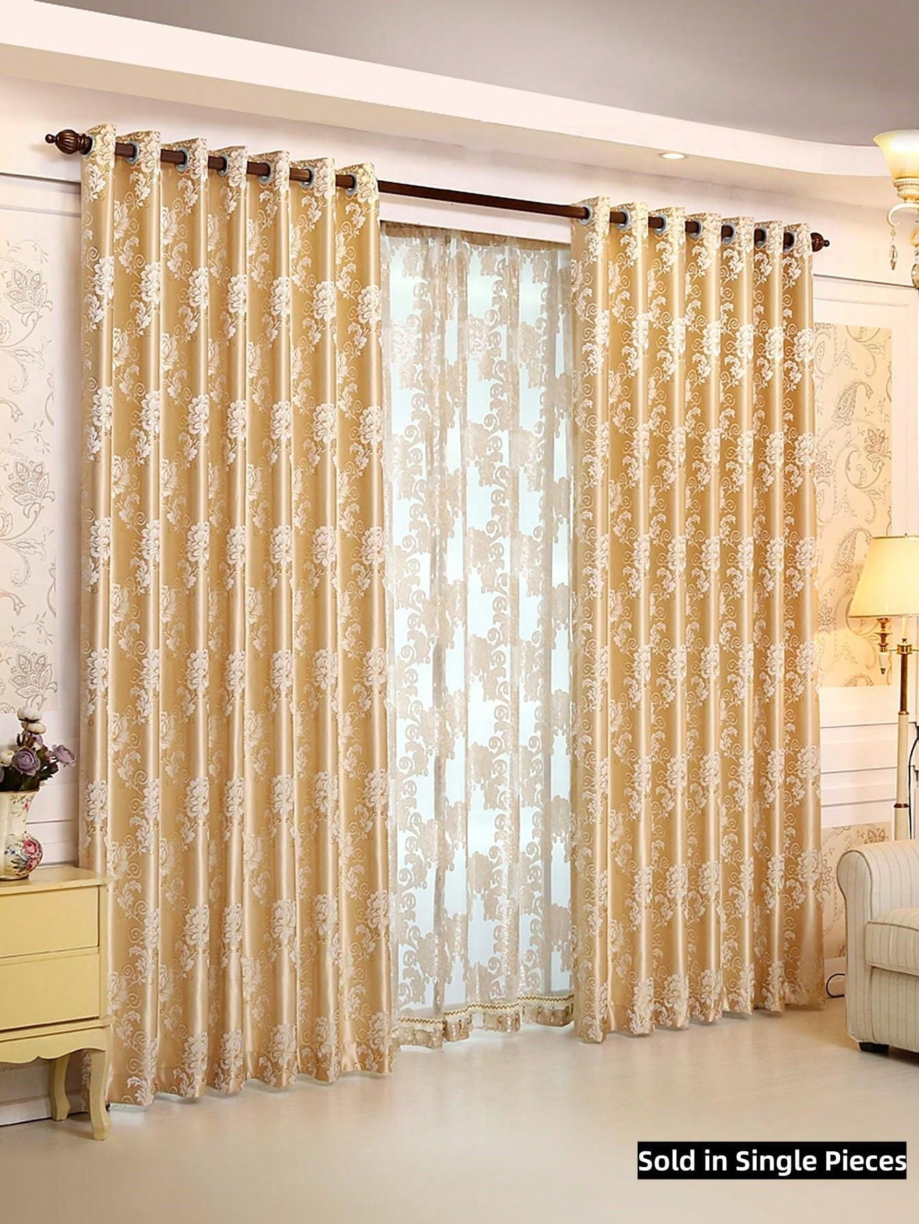 Be the first to review “1pc Gold Colored Floral Pattern European Style Polyester Fiber Jacquard Curtains, Suitable For Living Room Bedroom Window/Door Decoration” Cancel reply